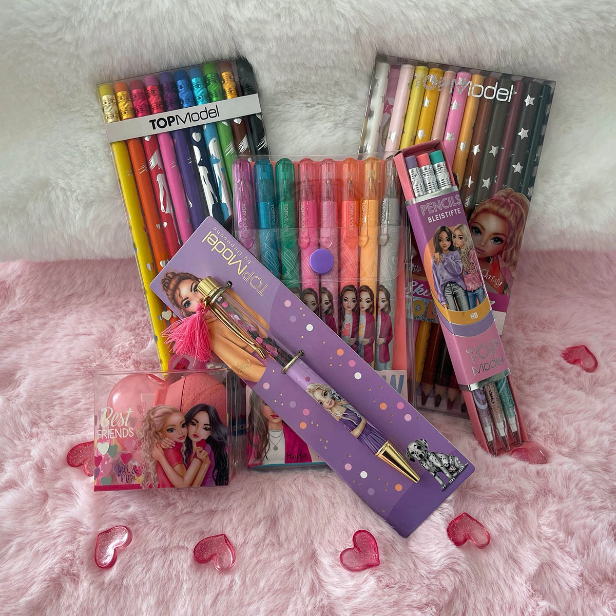 A legmenőbb csajoknak, sok szeretettel… Ez a csomag azoknak a gyerekeknek készült, akik imádják a szép írószereket, a kreatív színezést és a TOPModel stílust. Praktikus iskolai alapdarabokat és látványos, örömteli kiegészítőket válogattunk össze egy csomagba.